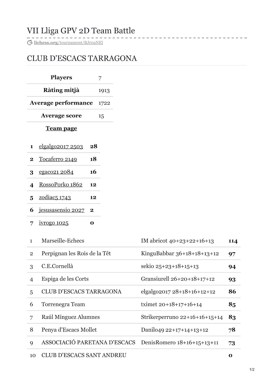 El Club Escacs Tarragona està disputant el torneig Lliga La Gran Penya 2D Team Batlle.